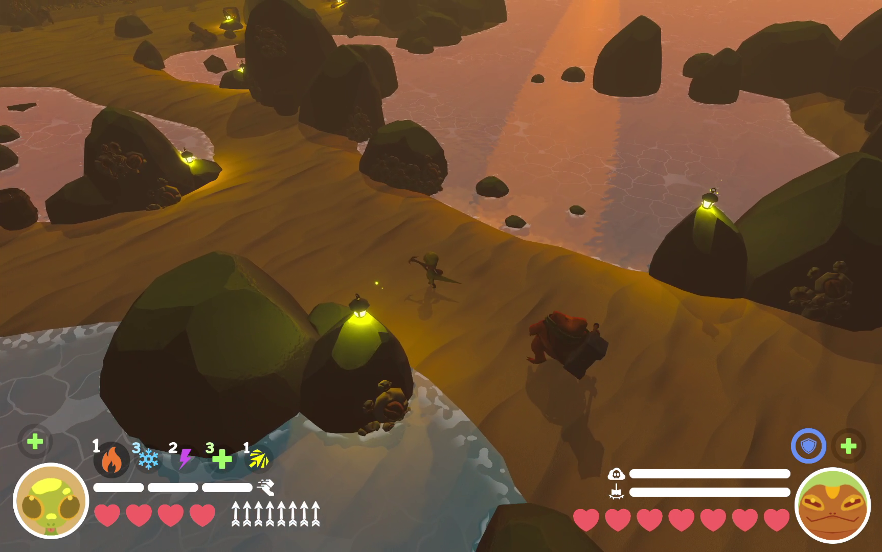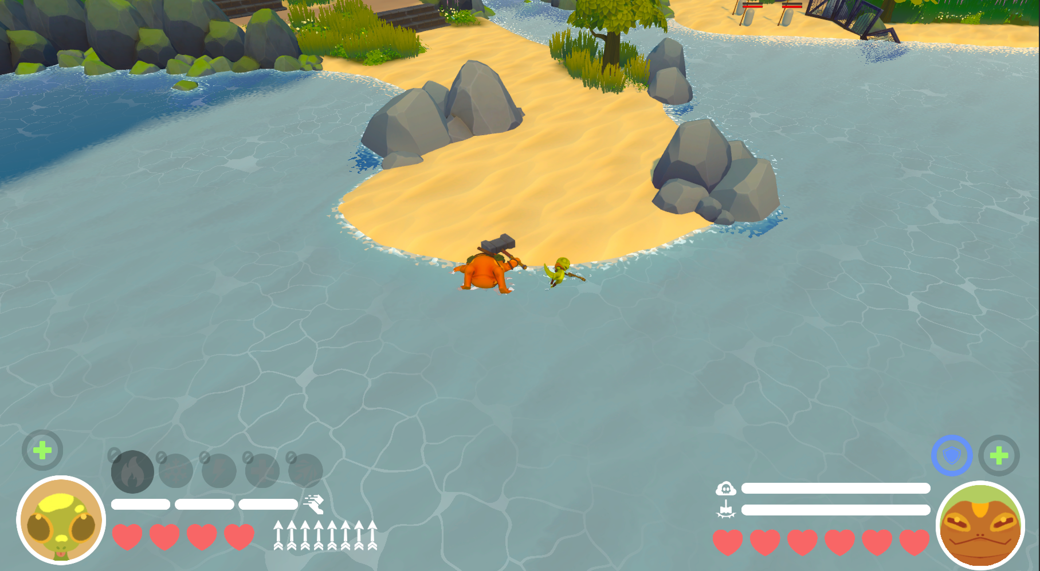 Like any good duo, Toad and Gecko work best when they work together. Ramp up a big slam as Toad when an enemy is filled with bolts and watch them drive through dealing huge damage! The fun isn't only for Toad, Gecko can use his scrap bolts to ignite Toads gas cloud with elements giving them a big boost in power